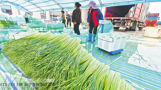 剛采摘的蒜薹即將裝箱發(fā)貨