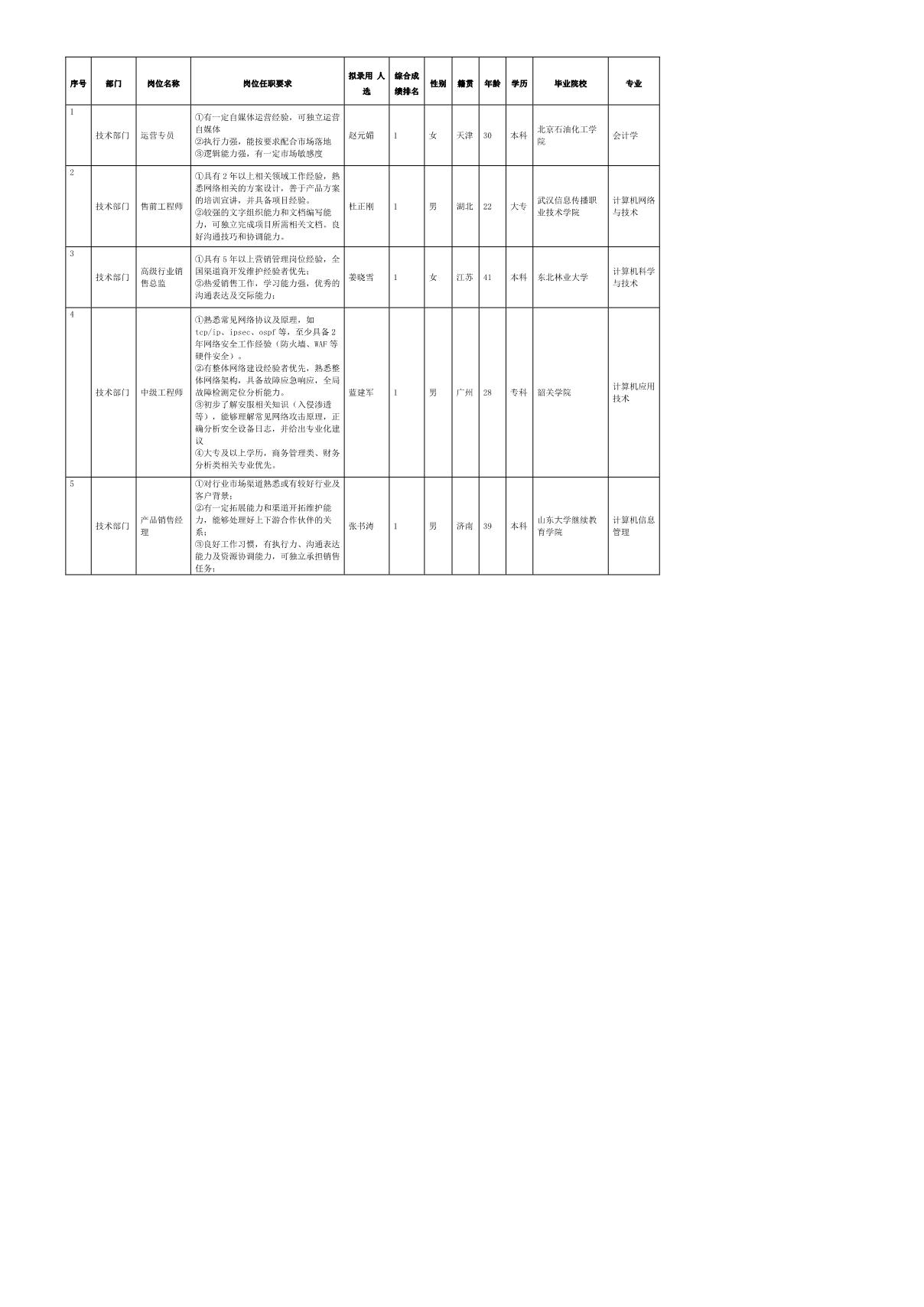 根據四川長虹佳華信息產品有限責任公司發(fā)布的招聘公告及招聘相關規(guī)定,經面試、考察、體檢等程序,擬錄用趙元媚、杜正剛、姜曉雪、藍建軍、張書濤同志到四川長虹佳華信息產品有限責任公司工作,現(xiàn)予以公示,具體情況如下: