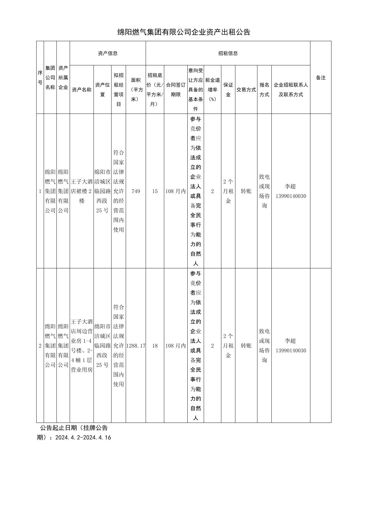 綿陽燃?xì)饧瘓F(tuán)有限公司企業(yè)資產(chǎn)出租公告
