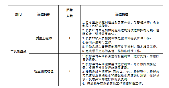 4.工作經(jīng)歷:具有鋰電池行業(yè)現(xiàn)場(chǎng)質(zhì)量管理、質(zhì)量測(cè)試工作經(jīng)驗(yàn)者優(yōu)先考慮,特別優(yōu)秀者,可適當(dāng)放寬學(xué)歷及專業(yè)要求。