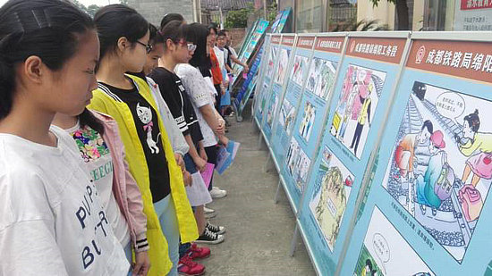 多年來(lái),游仙區(qū)石馬中學(xué)充分利用寶成鐵路復(fù)線(xiàn)、城際線(xiàn)路毗鄰學(xué)校的條件,將愛(ài)國(guó)主義教育緊密融合在“知路、愛(ài)路、護(hù)路”宣傳教育上,用多種形式向師生傳授鐵路安全知識(shí),拓寬安全教育內(nèi)涵,讓愛(ài)國(guó)主義教育生根發(fā)芽開(kāi)花結(jié)果。