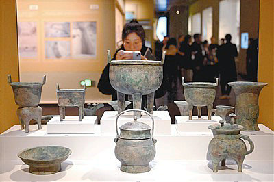 參觀者在河南安陽殷墟博物館新館內(nèi)拍攝展品。新華社記者 李 安攝