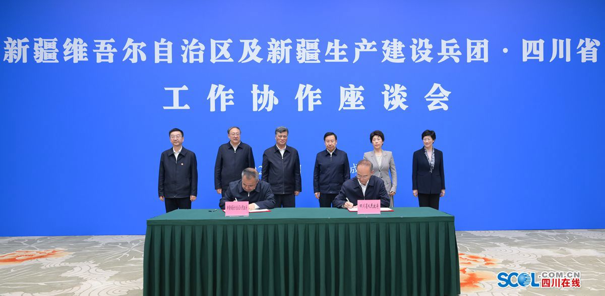 座談會上,在兩省區(qū)領(lǐng)導(dǎo)見證下,雙方簽署《新疆維吾爾自治區(qū)人民政府四川省人民政府戰(zhàn)略合作框架協(xié)議》《新疆生產(chǎn)建設(shè)兵團四川省人民政府戰(zhàn)略合作框架協(xié)議》。