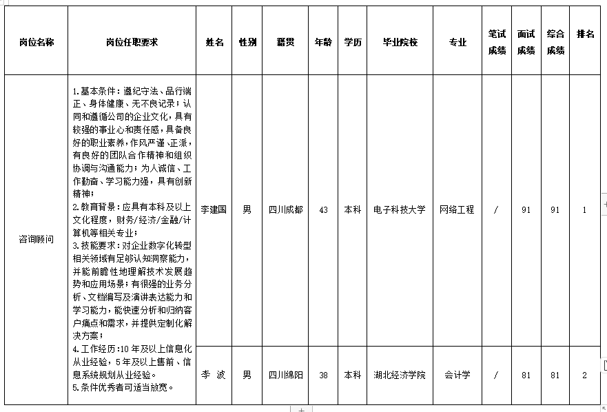 根據(jù)四川虹信軟件股份有限公司發(fā)布的招聘公告及招聘相關(guān)規(guī)定,經(jīng)筆試、面試等程序,現(xiàn)將筆試(面試)成績予以公示。