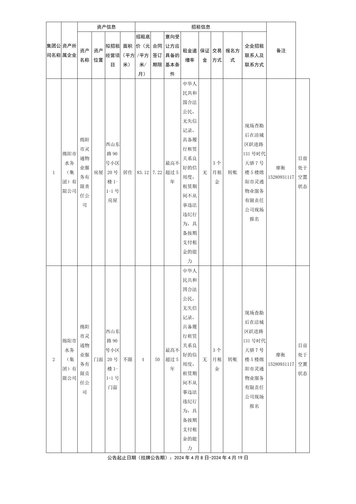 綿陽市水務(wù)(集團(tuán))有限公司資產(chǎn)出租公告