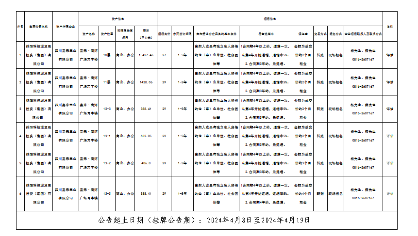四川嘉來(lái)置業(yè)有限公司資產(chǎn)出租公告