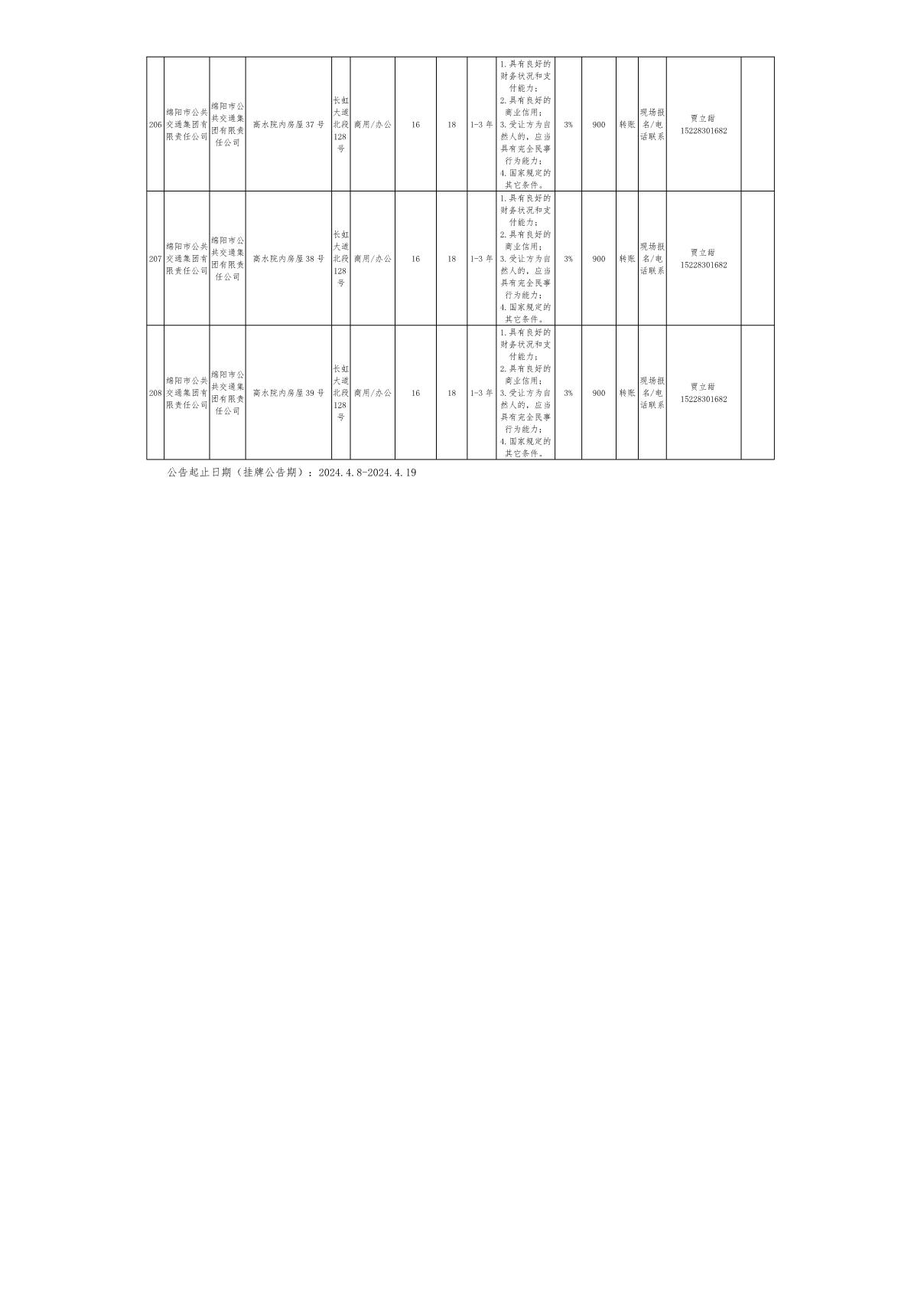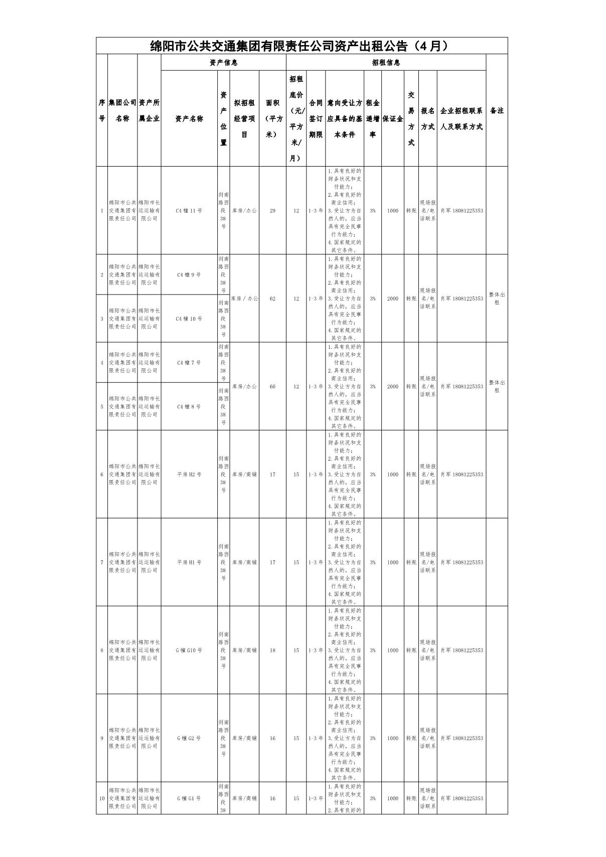 綿陽市公共交通集團有限責任公司資產出租公告(4月)