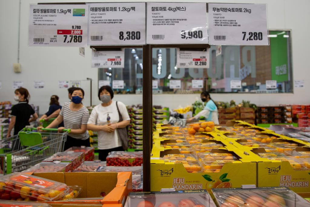 2022年7月9日,人們在韓國高陽市一家超市水果區(qū)購物。新華社記者王益亮攝