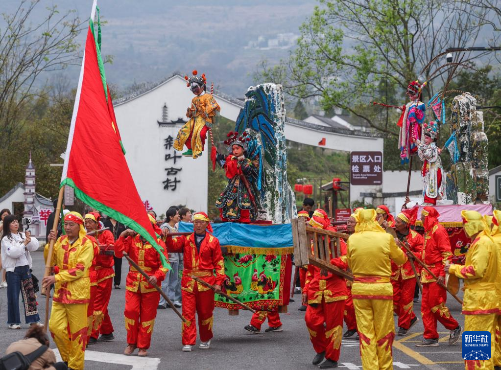 當日,浙江省建德市大慈巖鎮(zhèn)新葉村舉行“新葉三月三”特色民俗非遺展演。建德、蘭溪、龍游三地的“李村抬閣”“新葉昆曲”“龍游硬頭獅子”“畬族竹竿舞”等十余項非遺傳統(tǒng)節(jié)目在新葉古村輪番上演。