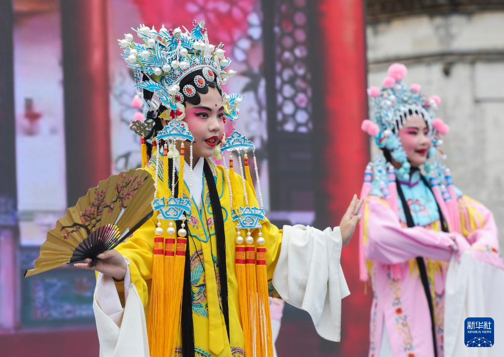 4月11日在“新葉三月三”特色民俗非遺展演中拍攝的昆曲表演。