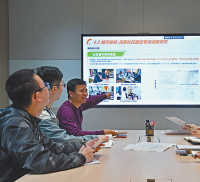 四川省建筑設計研究院有限公司城市體檢團隊討論分析體檢情況。人民日報記者 王永戰(zhàn)攝