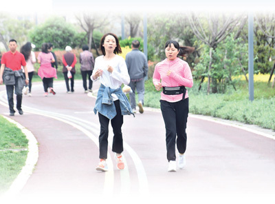 成都市民在青羊區(qū)清水河綠道晨跑。人民日報記者 王永戰(zhàn)攝