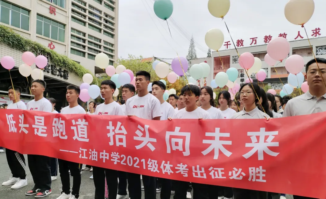 年級(jí)分管領(lǐng)導(dǎo)陳時(shí)剛副書記、年級(jí)主任徐俊作了動(dòng)員講話。他們表示,低頭是跑道,抬頭向未來,祝愿全體體考生取得優(yōu)異成績。領(lǐng)隊(duì)教師胡靜、體考考生代表分別作了表態(tài)發(fā)言:不負(fù)江高,不負(fù)青春,為夢(mèng)出征,體考必勝!
