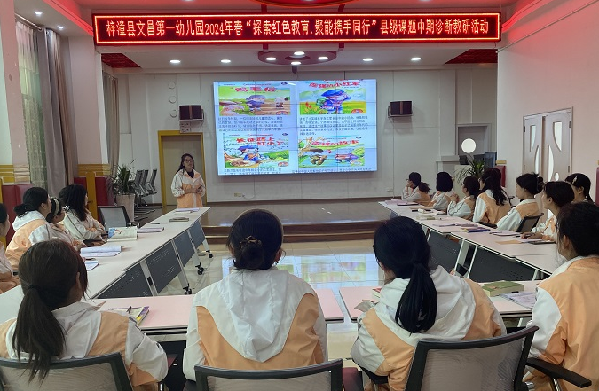 為了深化教師對(duì)紅色故事課題內(nèi)容的理解和把握,推動(dòng)“紅色故事”課程在教學(xué)中的有效實(shí)施,同時(shí),進(jìn)一步提高課題研究品質(zhì),扎實(shí)課題研究的深化與交流。近日,梓潼縣文昌一幼組織開(kāi)展了以“探索紅色教育·聚能攜手同行”為主題的縣級(jí)課題中期診斷教研會(huì)。