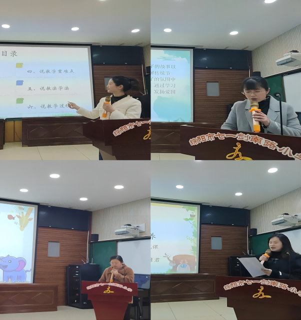 思維碰撞謀發(fā)展,學科研修促成長;精彩說課展風采,百舸爭流促提升。青年教師們解教材、定方向、借支架、設活動,緊抓“變”字,創(chuàng)設“真”情境,內容有情、有境、有深度,使學生的學習達成“真”發(fā)生。教師們通過說課展現自己對教學的思考與感悟,在交流中促進教學能力的成長。