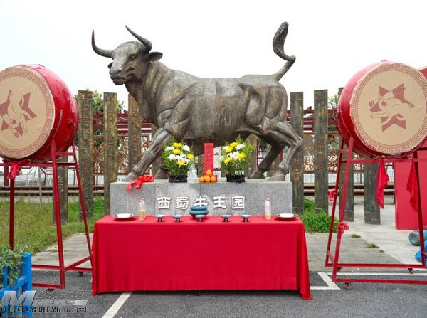 當(dāng)天上午,伴隨威武的鼓聲,身著古裝的小伙捧著豬頭、雞、酒及一大筐青草,從噴泉處虔誠(chéng)的來(lái)到鐵牛前,將祭物擺好。傳令員持“牛王下界”令牌,上前敬香,朝鐵牛三叩首,宣讀祭文。