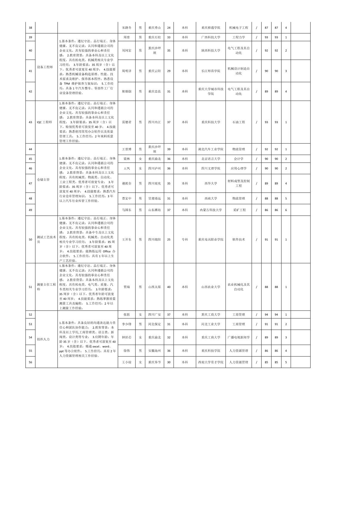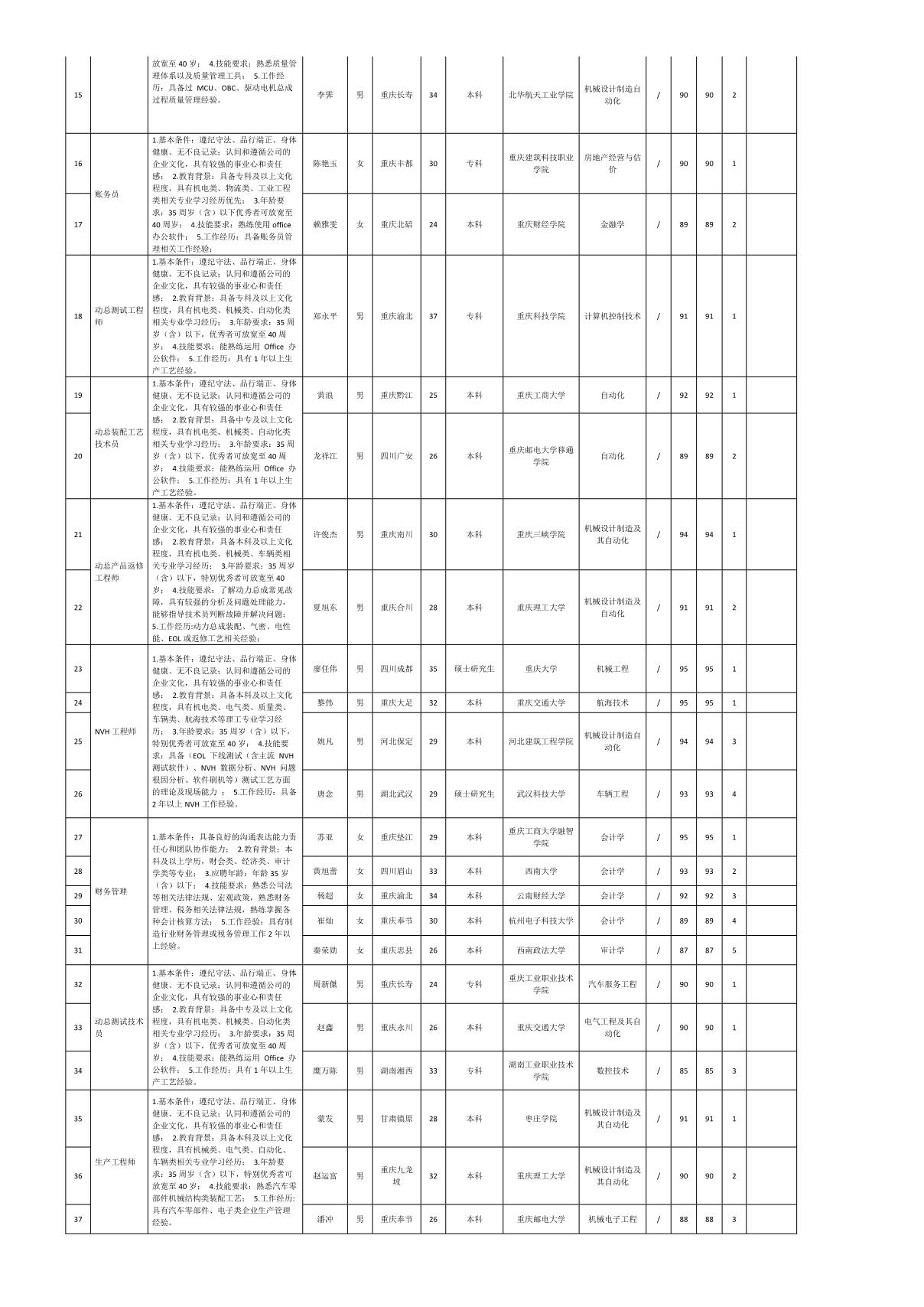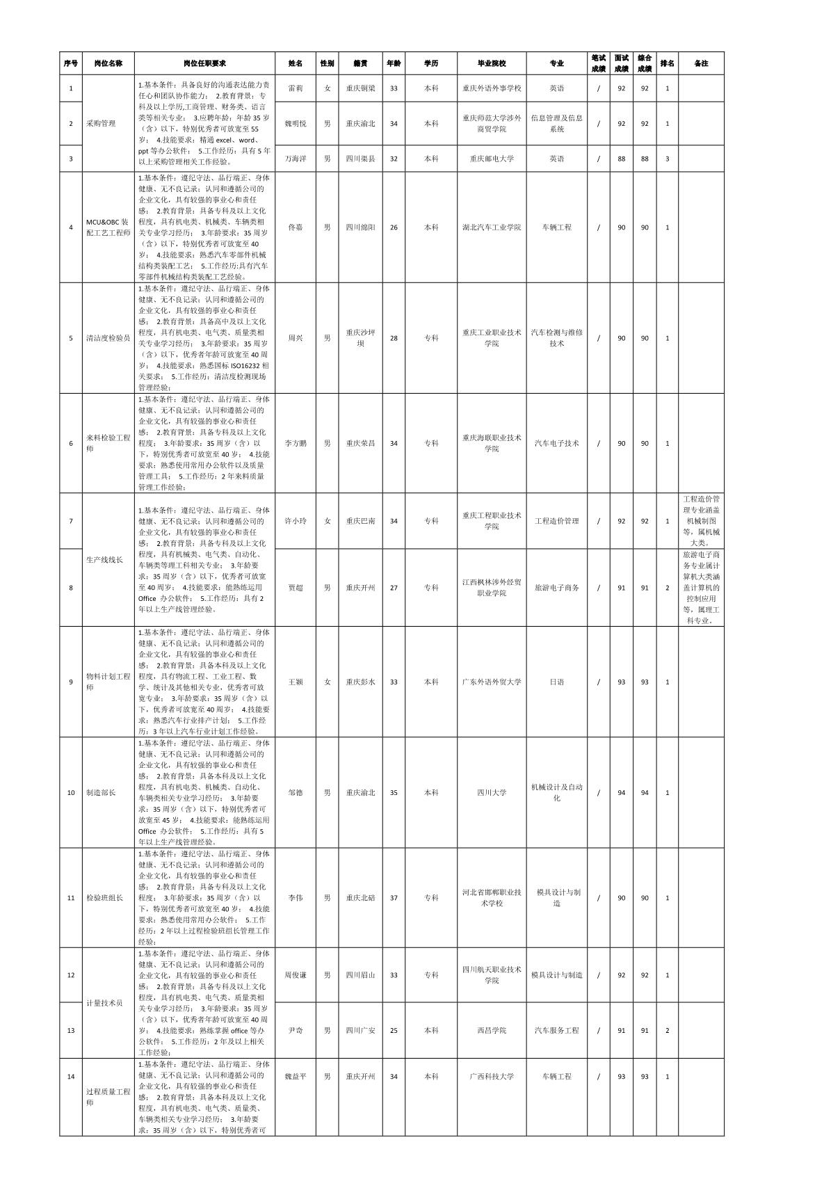 根據(jù)重慶九洲智造科技有限公司發(fā)布的招聘公告及招聘相關(guān)規(guī)定,經(jīng)筆試、面試等程序,現(xiàn)將筆試(面試)成績(jī)予以公示。