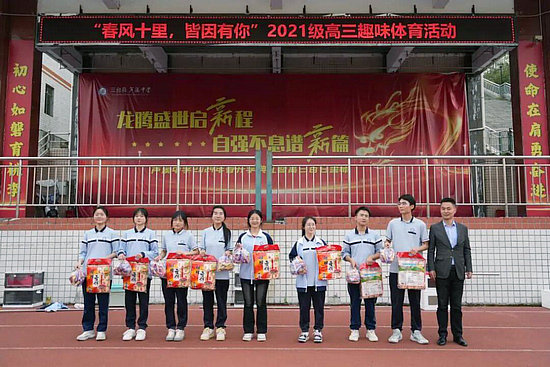 綿陽(yáng)新聞網(wǎng)訊 為了豐富高三師生生活,調(diào)節(jié)備考情緒,減輕師生備考?jí)毫Γ嵘龓熒鷤淇夹?,營(yíng)造積極向上的學(xué)習(xí)氛圍,4月12日下午四點(diǎn),三臺(tái)縣蘆溪中學(xué)高2021級(jí)年級(jí)組舉行了以“春風(fēng)十里,皆因有你”為主題的趣味運(yùn)動(dòng)會(huì)。