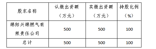 綿陽能投置業(yè)有限公司為國有全資公司。其中,綿陽興綿燃氣有限責(zé)任公司(以下簡稱“興綿燃氣公司”)持有的國有股權(quán)比例占公司總股本的100%,具體股權(quán)結(jié)構(gòu)如下表所示: