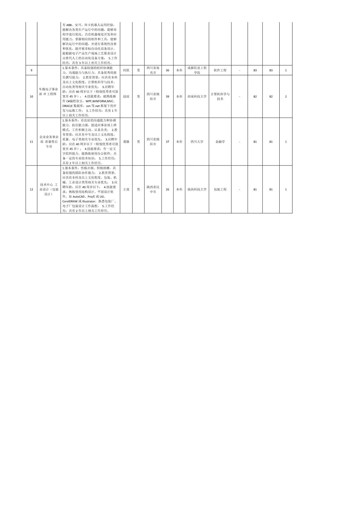 根據四川九州電子科技股份有限公司發(fā)布的招聘公告及招聘相關規(guī)定,經筆試、面試等程序,現將筆試(面試)成績予以公示。