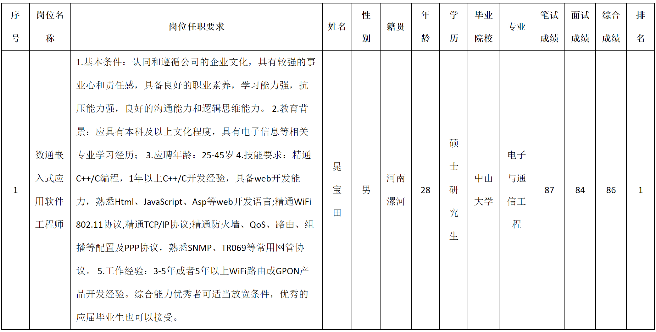 根據(jù)深圳市九州電器有限公司發(fā)布的招聘公告及招聘相關(guān)規(guī)定,經(jīng)筆試、面試等程序,現(xiàn)將筆試(面試)成績(jī)予以公示。