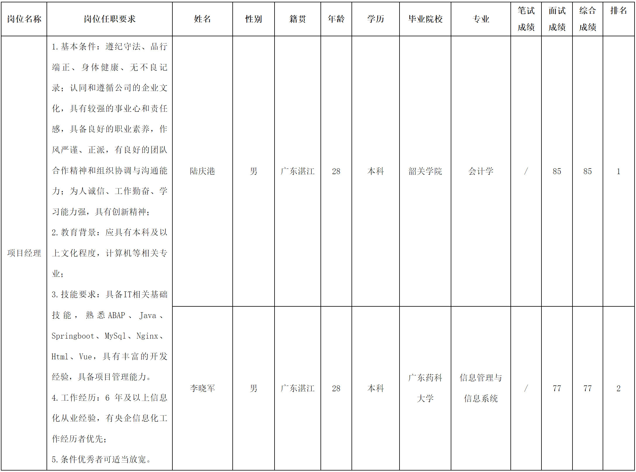說明:面試者陸慶港為會計(jì)學(xué)專業(yè),經(jīng)實(shí)際考察,他具有6年軟件開發(fā)及項(xiàng)目管理經(jīng)驗(yàn),個人綜合能力較強(qiáng),符合本崗位的復(fù)合型人才要求。