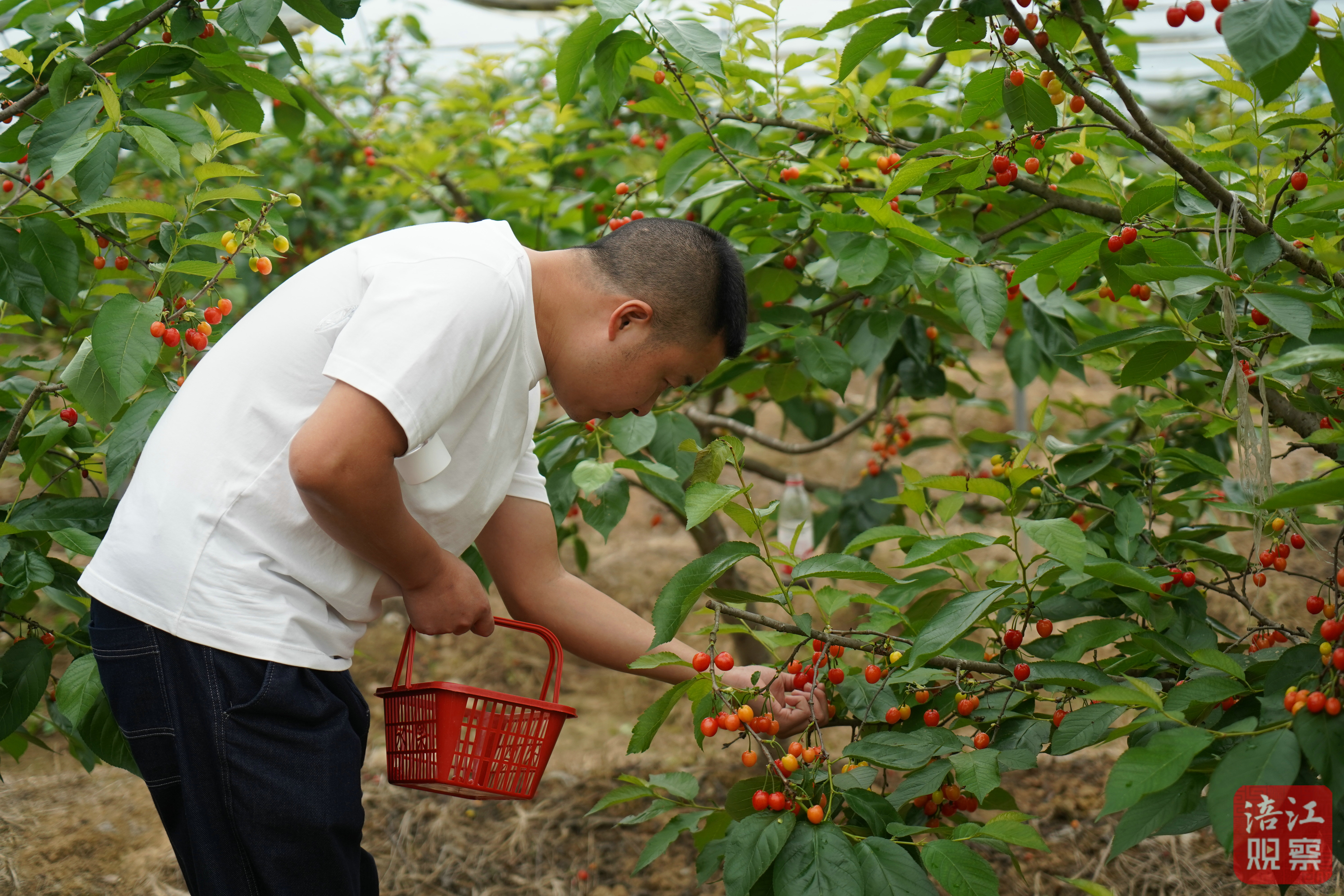 在安州區(qū)花荄鎮(zhèn)興福村的櫻桃采摘園,四處都彌漫著櫻桃的香甜,不少游客提著籃子,正興高采烈地采摘著。