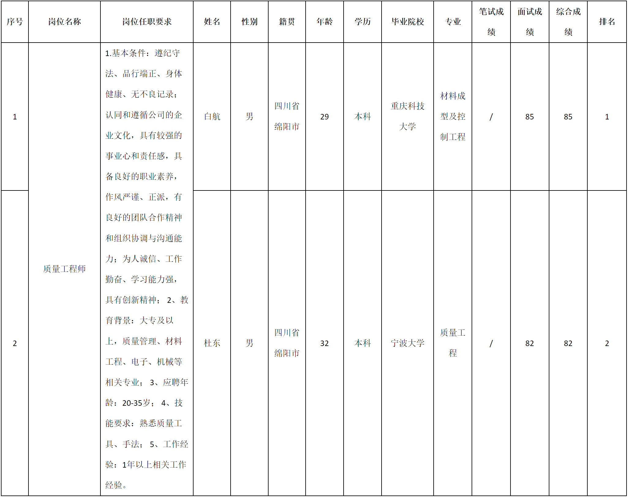 根據(jù)四川九華光子通信技術(shù)有限公司發(fā)布的招聘公告及招聘相關(guān)規(guī)定,經(jīng)筆試、面試等程序,現(xiàn)將筆試(面試)成績予以公示。