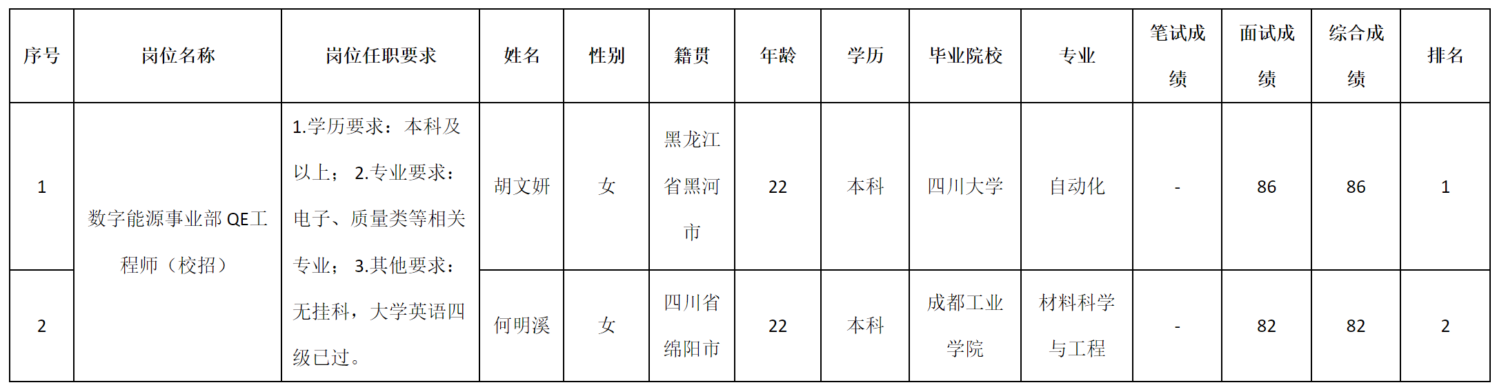根據(jù)四川九州電子科技股份有限公司發(fā)布的招聘公告及招聘相關(guān)規(guī)定,經(jīng)筆試、面試等程序,現(xiàn)將筆試(面試)成績予以公示。
