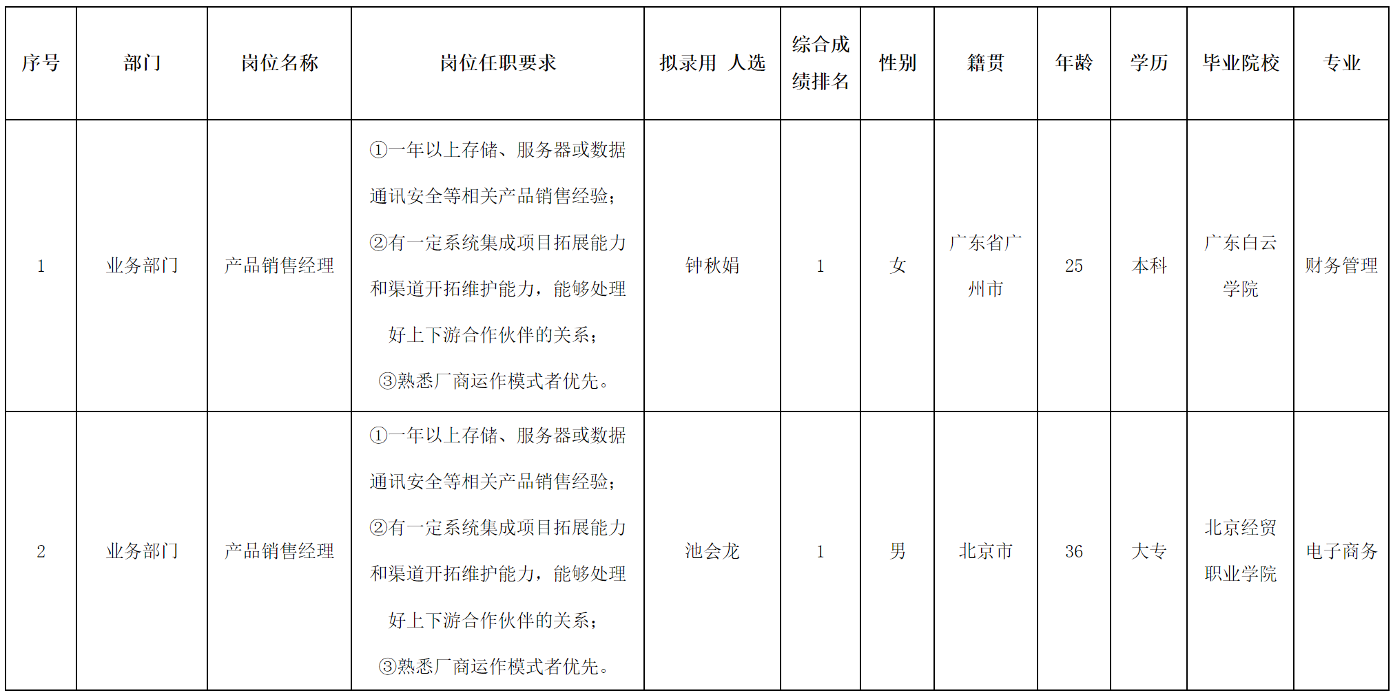 根據四川長虹佳華信息產品有限責任公司發(fā)布的招聘公告及招聘相關規(guī)定,經面試、考察、體檢等程序,擬錄用鐘秋娟、池會龍同志到四川長虹佳華信息產品有限責任公司工作,現予以公示,具體情況如下