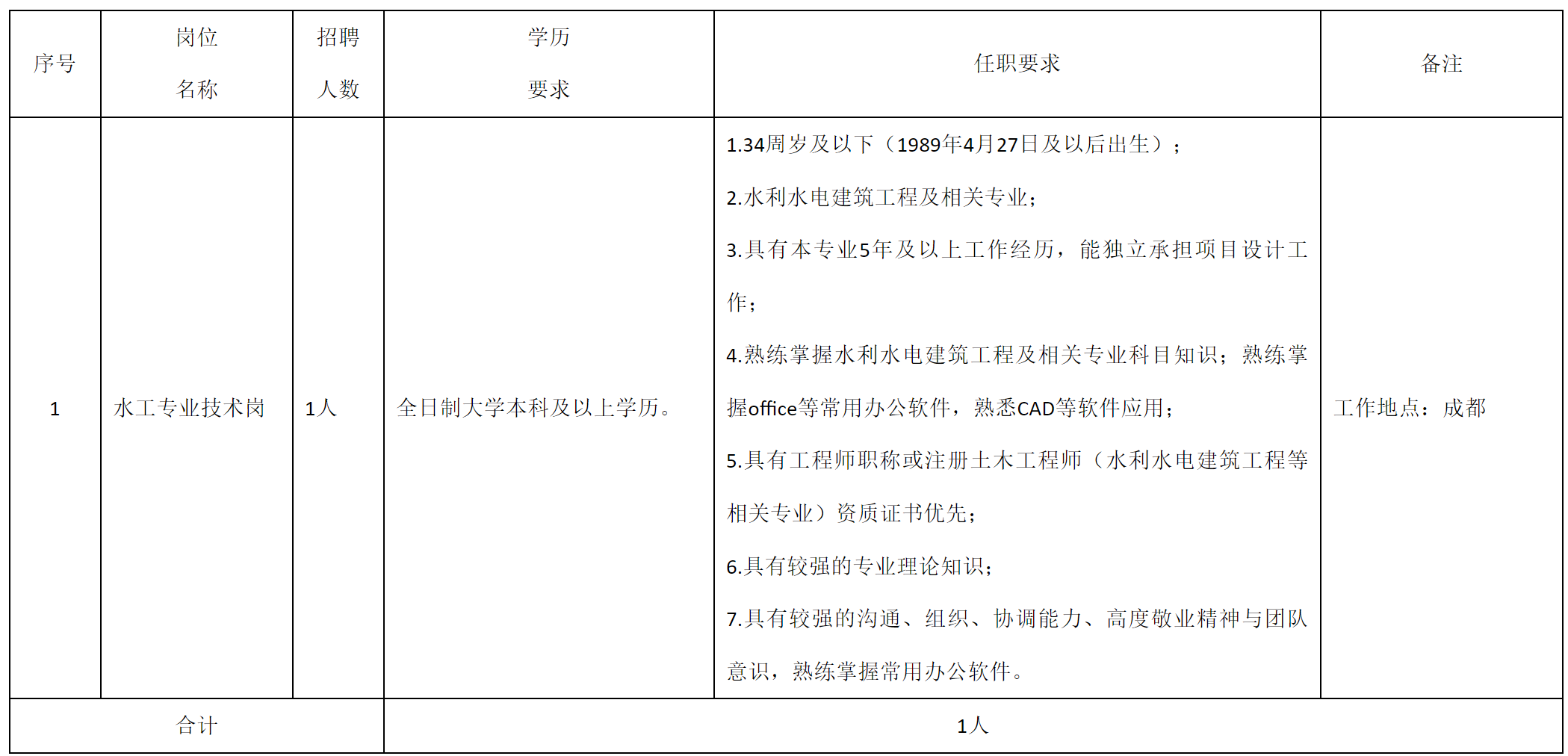 附件:綿陽市水利規(guī)劃設(shè)計研究院有限公司成都分公司公開招聘工作人員報名表