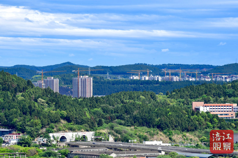 站在經(jīng)開區(qū)高樓上向城區(qū)方向眺望,只見三江兩岸高樓林立,樹木蔥郁、湖水碧綠,遠(yuǎn)處的龍門山脈輪廓清晰可見,美不勝收!