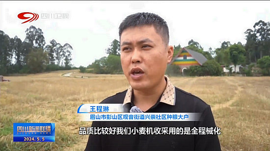眉山市彭山區(qū)觀音街道興崇社區(qū)種糧大戶 王程琳:(畝)產(chǎn)量預(yù)計(jì)在700斤左右,品質(zhì)比較好,我們小麥機(jī)收采用的是全程械化,收一畝地一個收割機(jī)只需要10多分鐘就能完成。