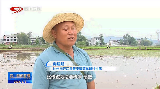 達(dá)州市開江縣普安鎮(zhèn)筒車鋪村村民 向建明:一天能夠插40多畝,比傳統(tǒng)栽法要科學(xué)、高效,生產(chǎn)能夠增產(chǎn)、增收。