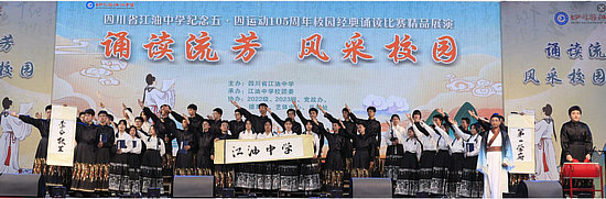 綿陽新聞網(wǎng)訊 4月27日晚,江油中學在運動場舉行了以“經(jīng)典誦讀芳香入心 風采校園魅力青春”為主題的紀念五四運動105周年經(jīng)典誦讀比賽精品展演晚會。