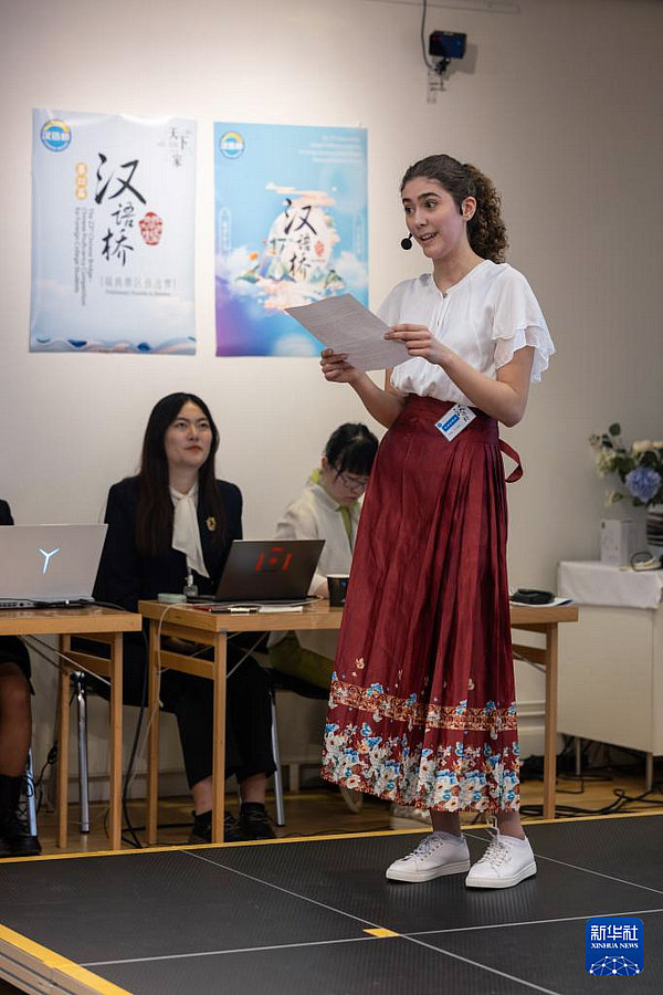 5月5日,在瑞典首都斯德哥爾摩的中國文化中心,參賽學(xué)生進(jìn)行中文水平和才藝展示。