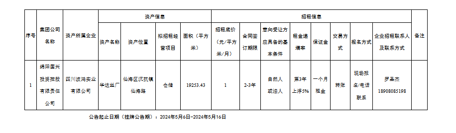 綿陽(yáng)國(guó)興投資控股有限責(zé)任公司資產(chǎn)出租公告