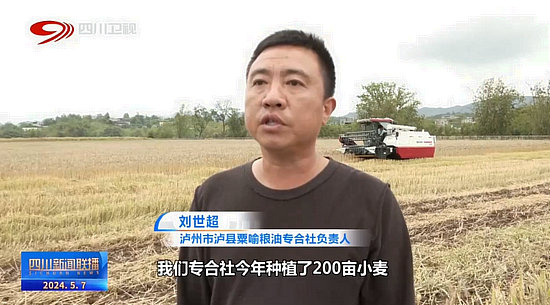 瀘州市瀘縣粟喻糧油專合社負(fù)責(zé)人 劉世超:我們專合社今年種植了200畝小麥,預(yù)計(jì)每畝的產(chǎn)量是在450斤以上,總產(chǎn)量達(dá)到9萬(wàn)斤以上。