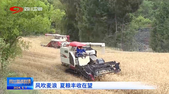麥浪翻滾,又到一年麥?zhǔn)彰?。在綿陽(yáng)市鹽亭縣,大型收割機(jī)正在麥田中來(lái)回穿梭,將成熟的小麥?zhǔn)崭钛b車。為確保全縣24萬(wàn)畝小麥顆粒歸倉(cāng),今年,鹽亭涉農(nóng)部門提前制訂完善農(nóng)機(jī)跨區(qū)作業(yè)方案,小麥?zhǔn)崭顚?shí)現(xiàn)提質(zhì)增效。