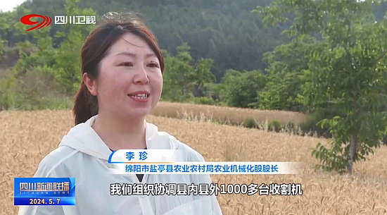 綿陽(yáng)市鹽亭縣農(nóng)業(yè)農(nóng)村局農(nóng)業(yè)機(jī)械化股股長(zhǎng) 李珍:我們組織協(xié)調(diào)縣內(nèi)縣外1000多臺(tái)收割機(jī),對(duì)機(jī)手進(jìn)行技術(shù)培訓(xùn),對(duì)機(jī)具進(jìn)行(實(shí)時(shí))檢修和保養(yǎng)。
