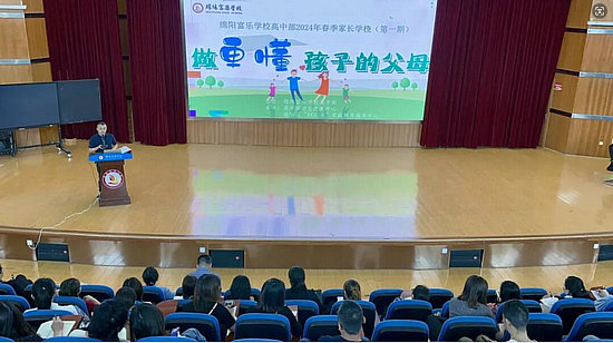 綿陽新聞網(wǎng)訊 為了引導(dǎo)家長為學(xué)生和家庭提供更加專業(yè)化、科學(xué)化的教養(yǎng)環(huán)境,進一步加強家校聯(lián)系,提高家校共育水平,促進家校社協(xié)同發(fā)展,共護孩子成長。5月5日,綿陽富樂學(xué)校高中部舉辦了以“做更懂孩子的父母”為主題的家長學(xué)校啟動儀式暨第一期課堂,活動通過專家指導(dǎo)、專業(yè)引領(lǐng)、共同探討的方式,向家長傳遞科學(xué)的家庭教育知識,豐富家長的家庭教育理論,提高家庭教育水平,幫助家長樹立正確的人才觀、教育觀和質(zhì)量觀,掌握科學(xué)的家庭教育方法,創(chuàng)造良好的、科學(xué)的現(xiàn)代家庭教育環(huán)境,最終實現(xiàn)家校溝通、家?;パa、家校一體的教育模式,將孩子培養(yǎng)成有用之才。本次活動由高中部學(xué)生發(fā)展中心主任劉元超主持。