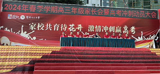 集中家長會在該校運(yùn)動場召開,由高三年級主任侯坪主持。大會在莊嚴(yán)的升旗儀式中拉開序幕!