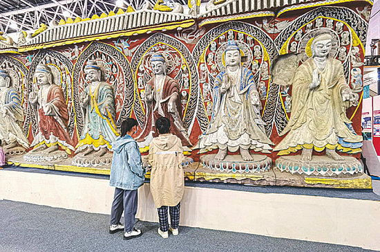 2023年10月19日,游客欣賞3D打印的云岡造像。新華每日電訊記者王學濤攝