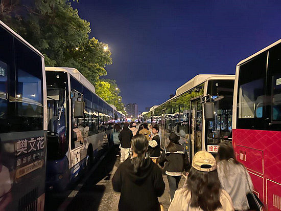 太原演唱會(huì)散場(chǎng)后,觀眾有序乘坐免費(fèi)接駁車(chē)。新華社記者 馬曉潔 攝