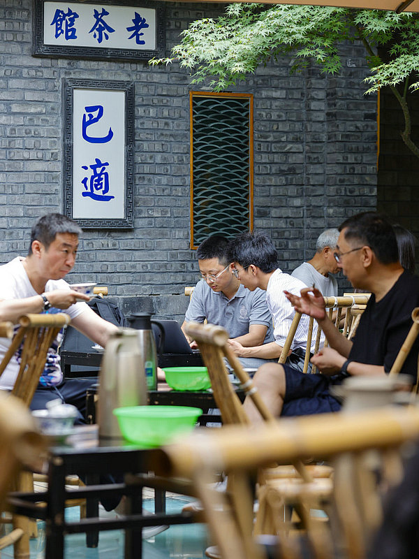 今天的成都,常住人口已突破2100萬(wàn)。城市飛速發(fā)展的同時(shí),茶館也繼續(xù)保持著旺盛的生命力。錦江畔的望江樓下,浣花溪邊的花叢間,文殊院的樹(shù)蔭里……2萬(wàn)多家茶館與城市脈搏共振,融入城市肌理。
