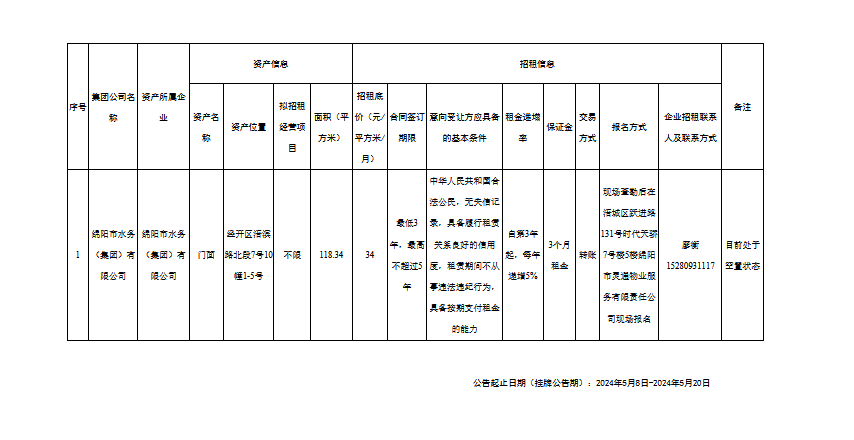 綿陽市水務(wù)(集團(tuán))有限公司資產(chǎn)出租公告