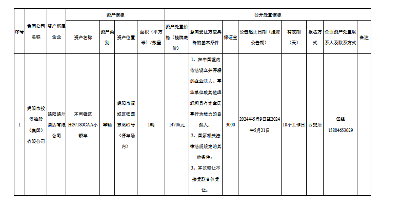 綿陽綿州酒店有限公司資產(chǎn)處置公告