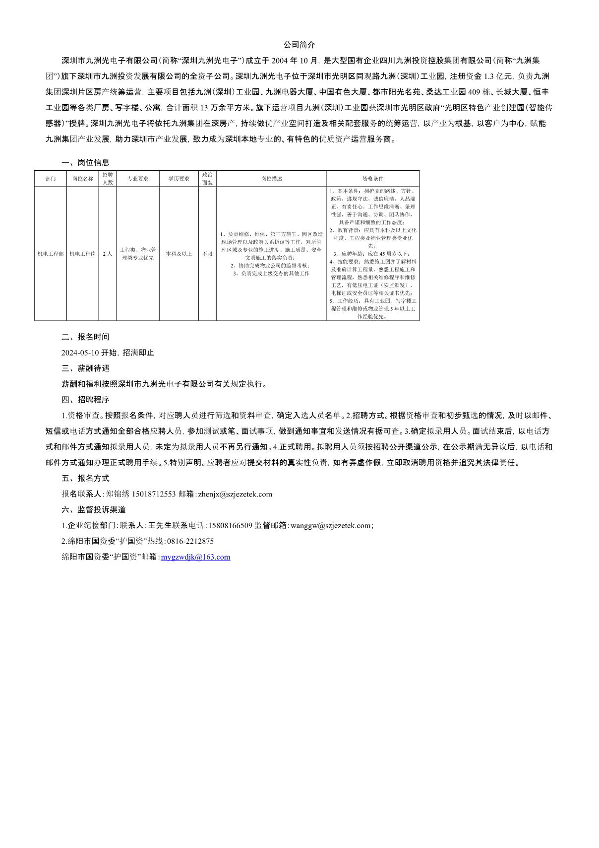 深圳市九洲光電子有限公司關(guān)于招聘機電工程崗位的公告