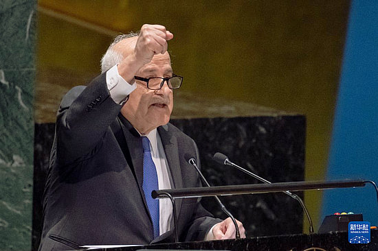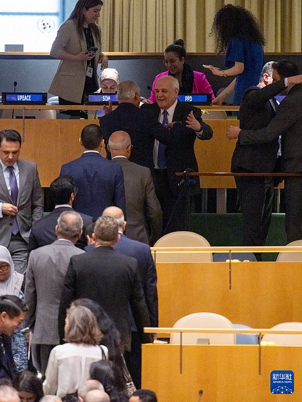 5月10日,第十次聯(lián)合國(guó)大會(huì)緊急特別會(huì)議以143票贊成、9票反對(duì)、25票棄權(quán)的表決結(jié)果通過(guò)決議,認(rèn)定巴勒斯坦國(guó)符合《聯(lián)合國(guó)憲章》規(guī)定的聯(lián)合國(guó)會(huì)員國(guó)資格,應(yīng)被接納為聯(lián)合國(guó)會(huì)員國(guó)。新華社發(fā)(聯(lián)合國(guó)供圖/曼努埃爾·伊萊亞斯攝)