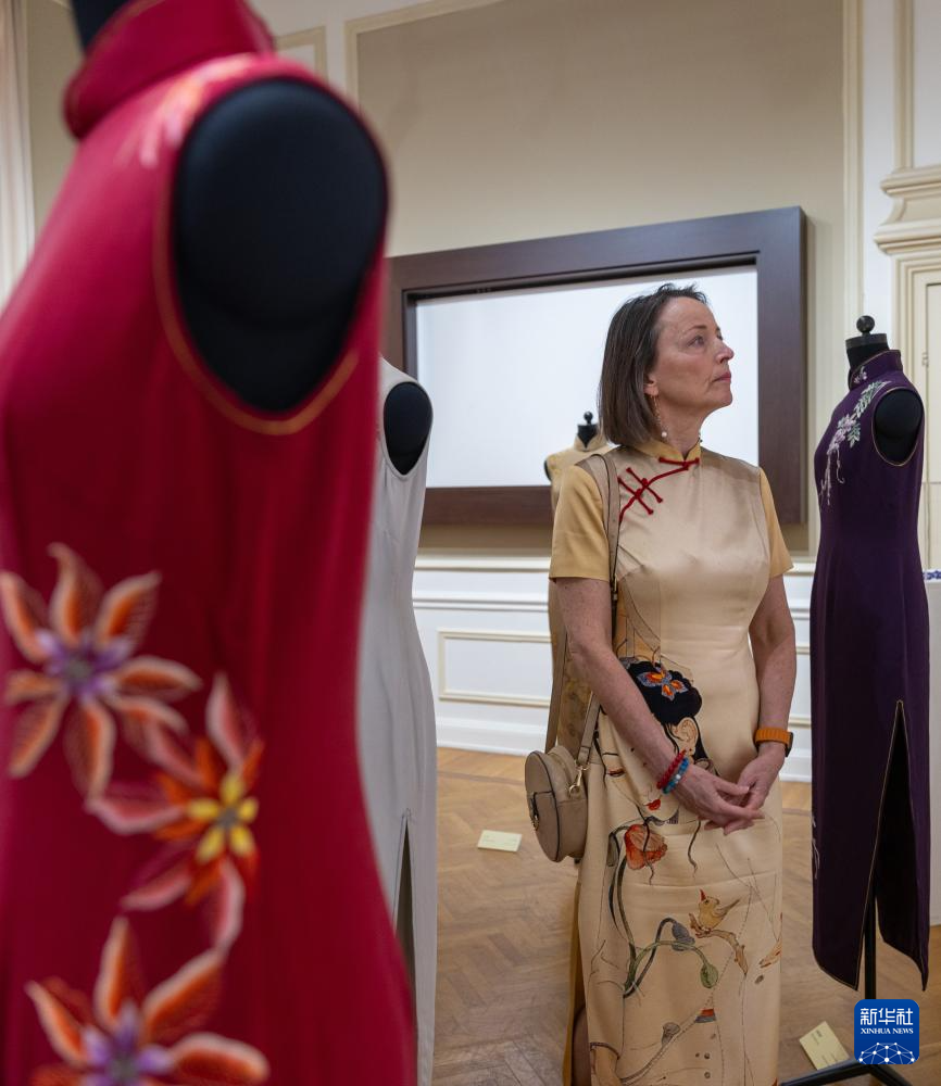 來自羅馬尼亞的伊萬娜·斯克埃什泰亞努在參觀展覽后表示:“我之前對20世紀(jì)初期的上海風(fēng)貌和歷史不太了解,這次旗袍展讓我有機(jī)會近距離欣賞旗袍之美,更深入地了解上海。這些旗袍非常精美,將傳統(tǒng)與現(xiàn)代結(jié)合在一起,能看到制作者一針一線中的巧思。這是一次中歐之間的文化交流,能讓歐洲人看到中國文化的不同方面。”